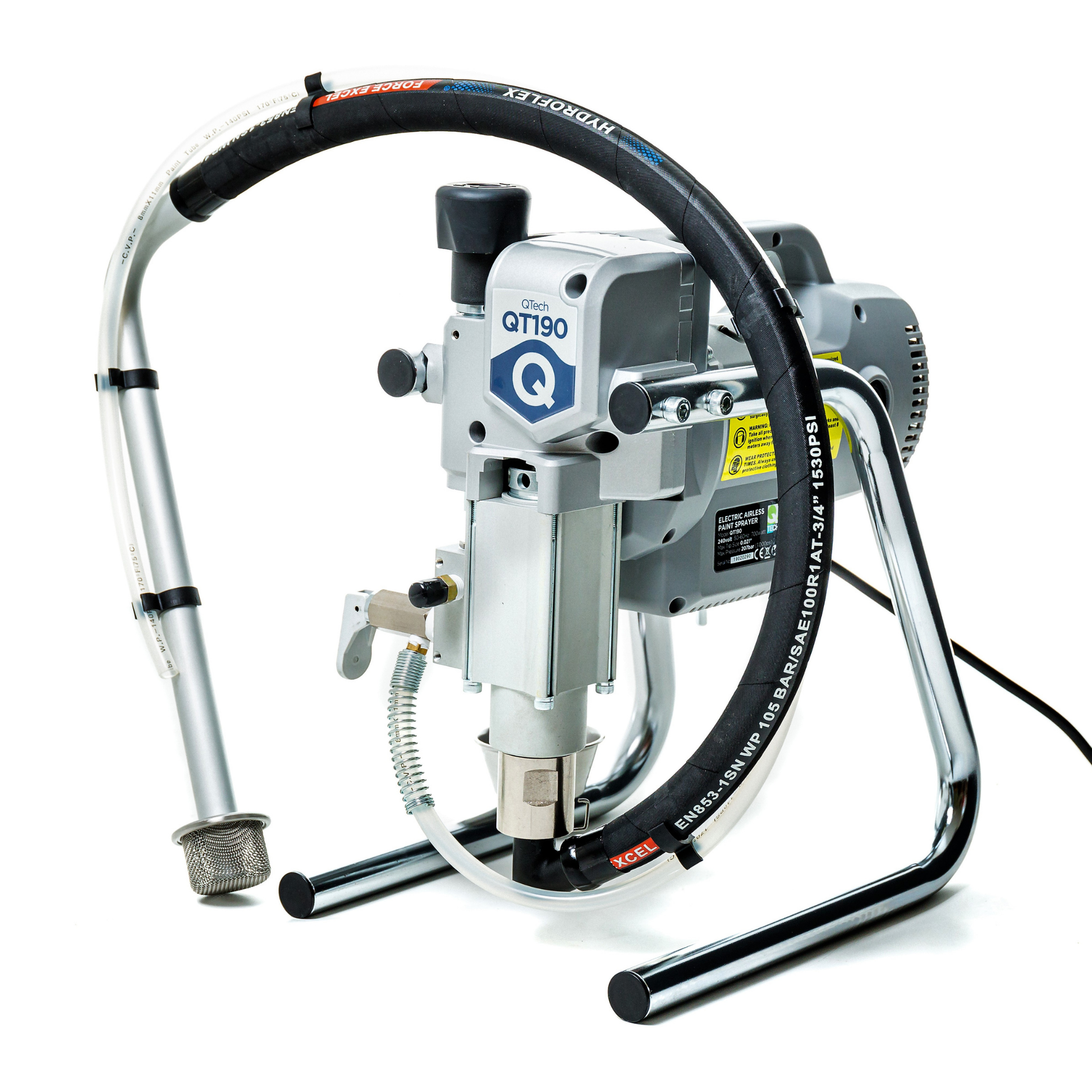 The QTech QT190 is a popular entry-level airless paint sprayer designed for professional decorators and trade use. It's know for offering professional performance in a compact, lightweight and easy-to-use package. It's positioned as an ideal choice for trade professionals moving into spray finishing of for those needing an airless sprayer for occasional use (e.g. 1-2 days a week) on small to medium sized jobs.